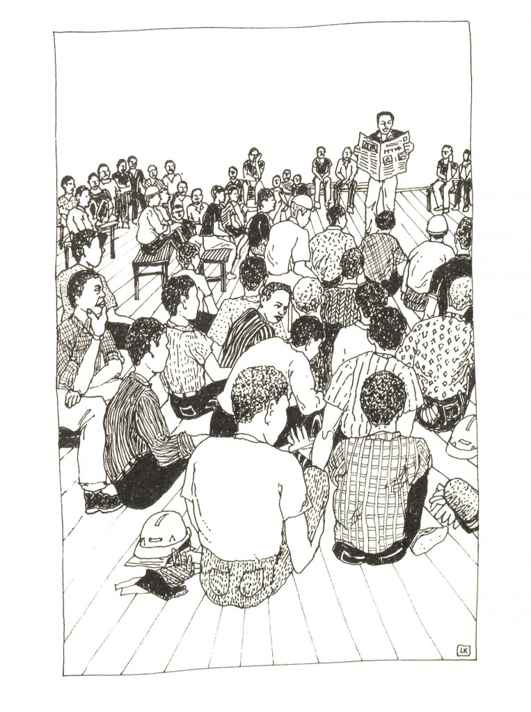 Mozambique became independent from Portugal in 1975, and Sketchley depicts a country both exploited and then abandoned by its colonisers. His work centres on the CIFEL steel factory based in Mozambique’s capital city Maputo, and efforts to boost production and institute a radical new model of workers control (consistent with the socialist aspirations of newly independent Mozambique). Workers who have never been properly trained (or in many cases educated) are both struggling to keep the factory going in the absence of Portuguese technicians and managers, and to throw off the colonial mentality of inferiority that has been inflicted deliberately upon them for generations.
